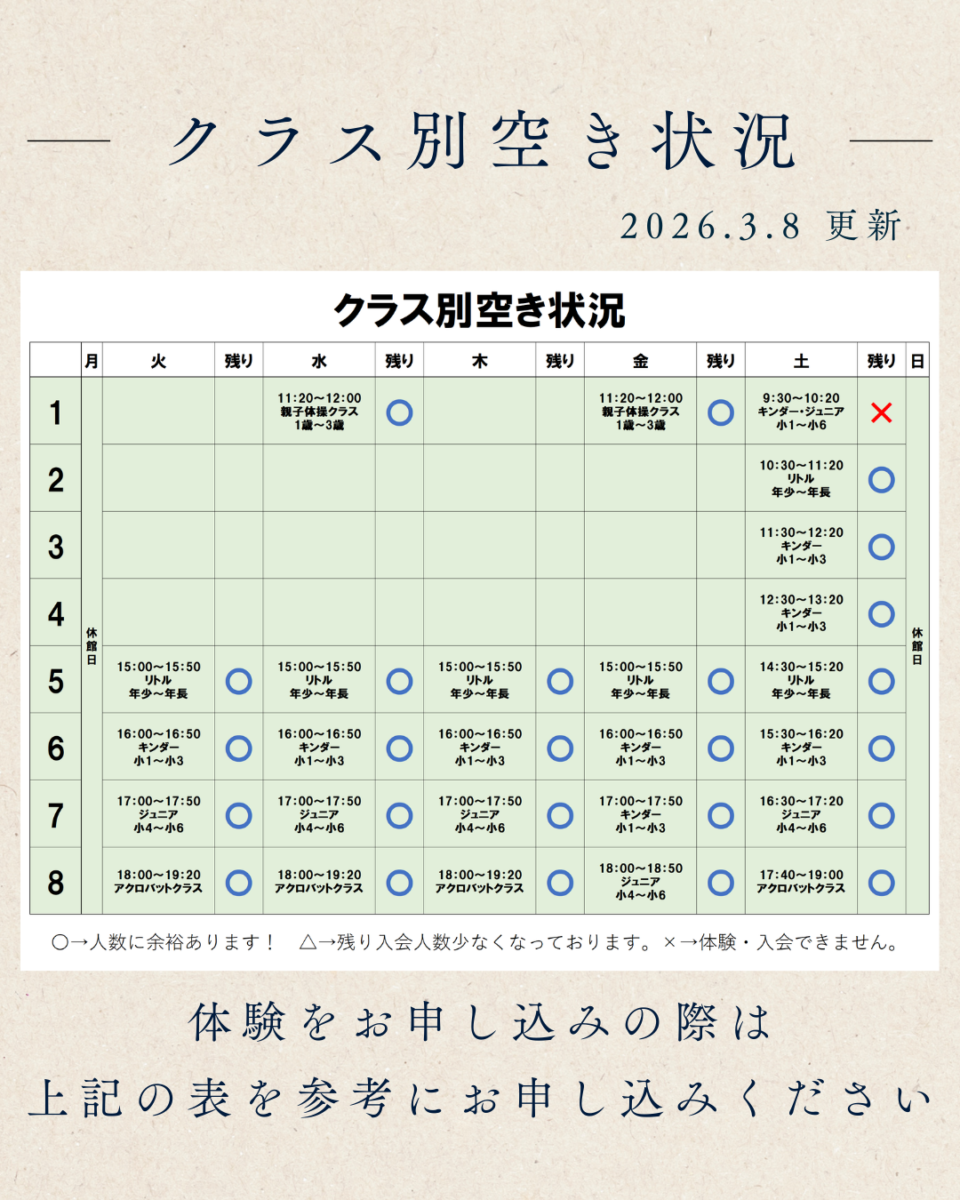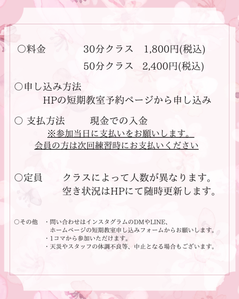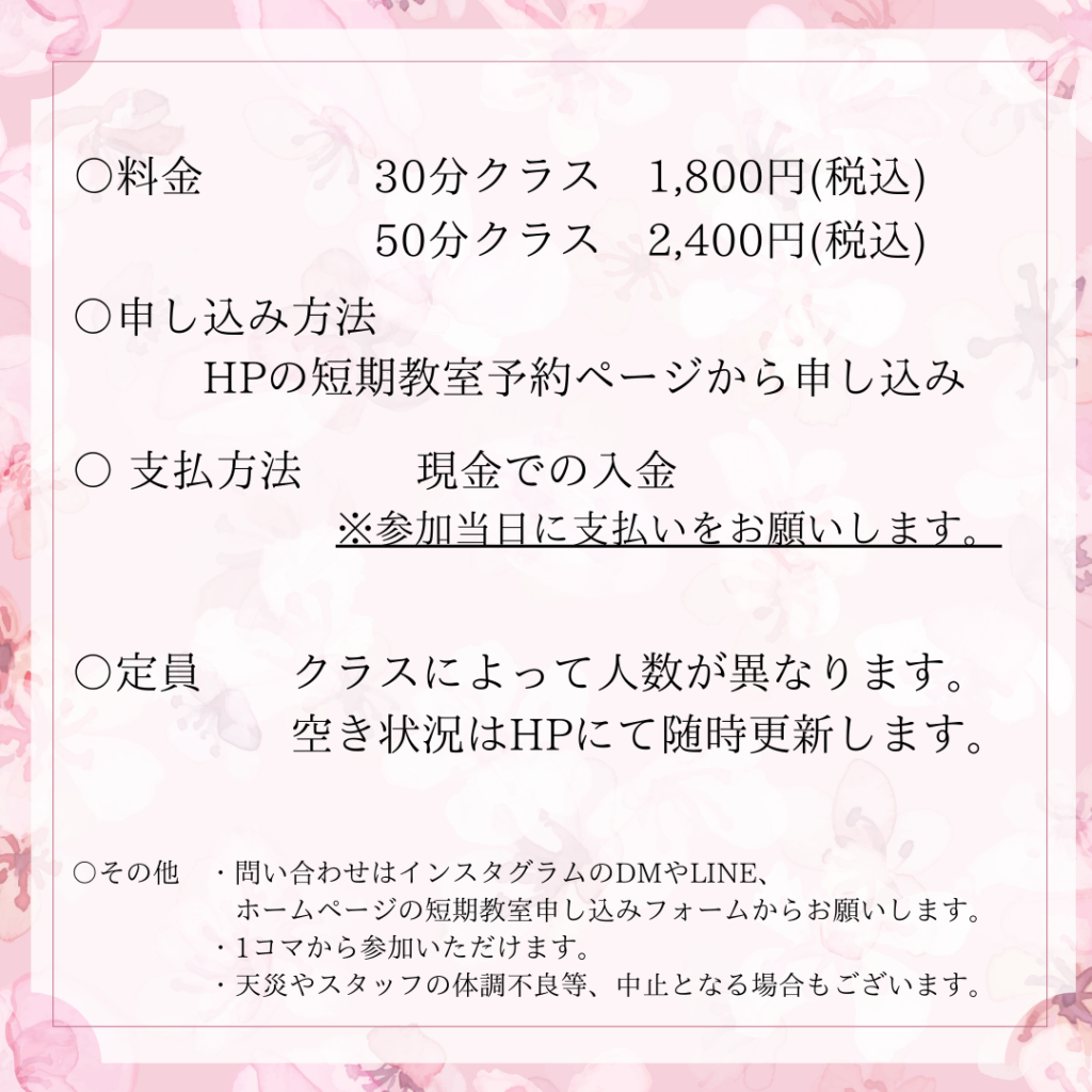 人気のクラスは早く埋まる可能性が高いので、申し込みはお早めに!