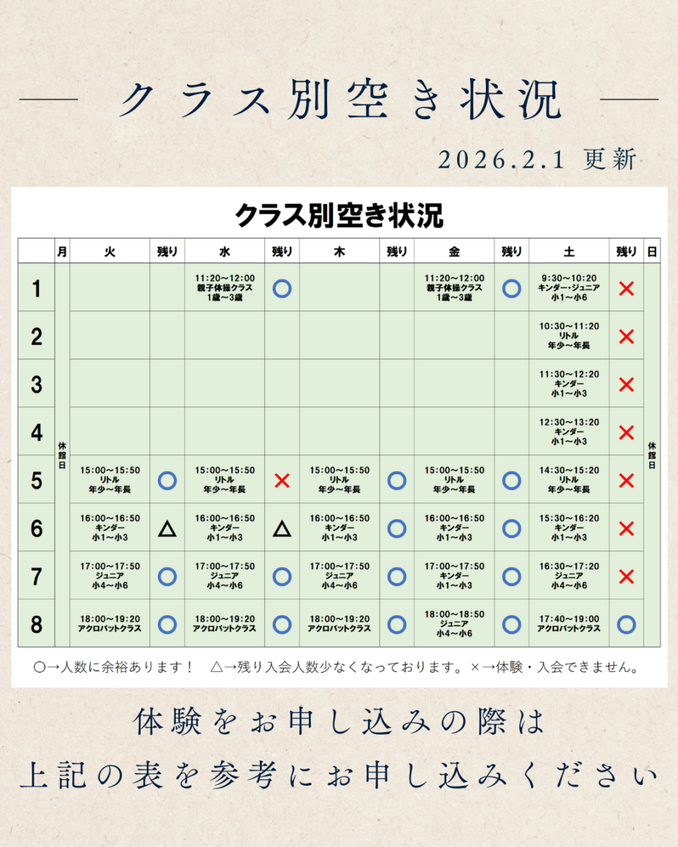 アクロバットクラス・親子体操教室の新規体験受付開始いたしました!