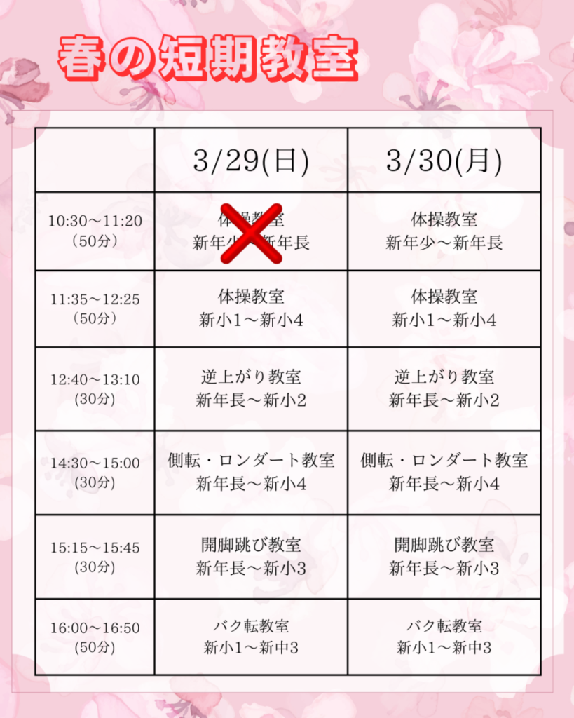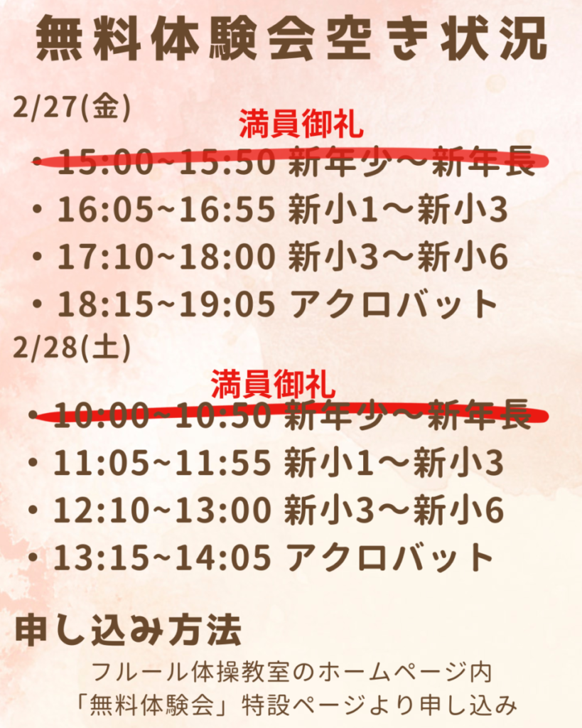 ※2月28日(土)10:00~クラス定員いっぱいとなりました。
