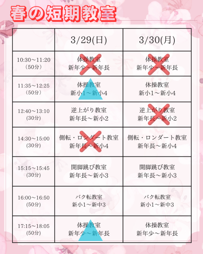 春の短期教室