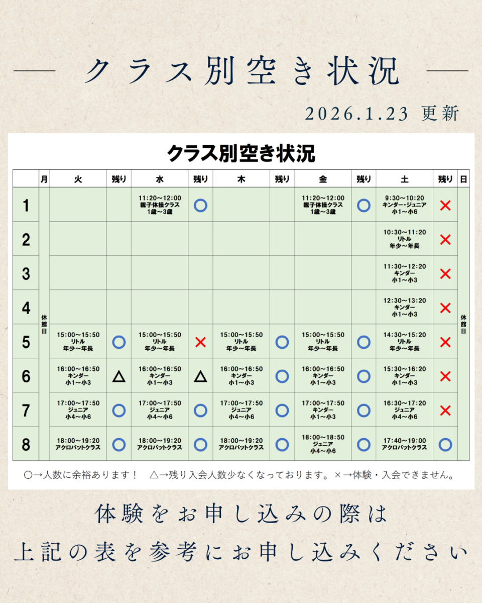 アクロバットクラス・親子体操教室の新規体験受付開始いたしました!